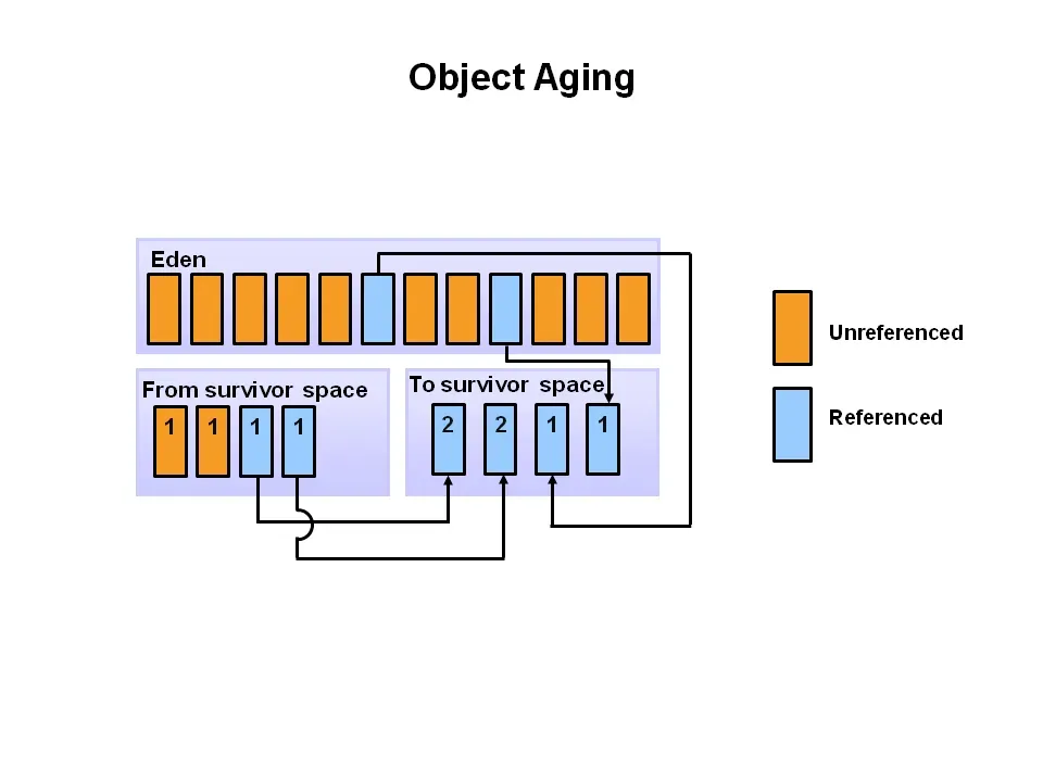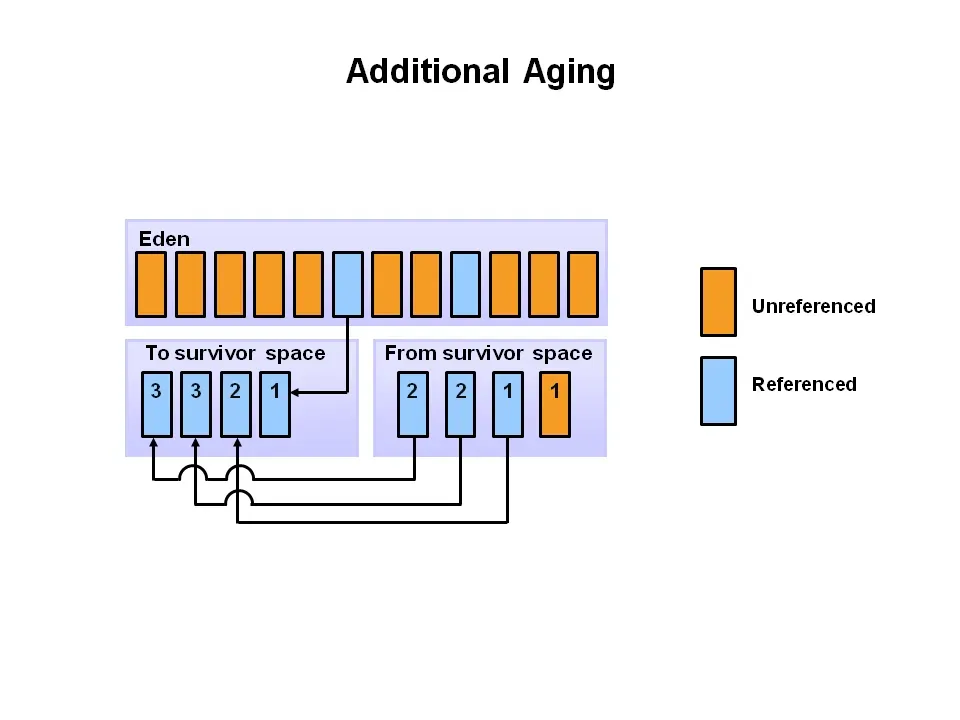 young generation. Then eden space that are unreferenced are cleared and the objects